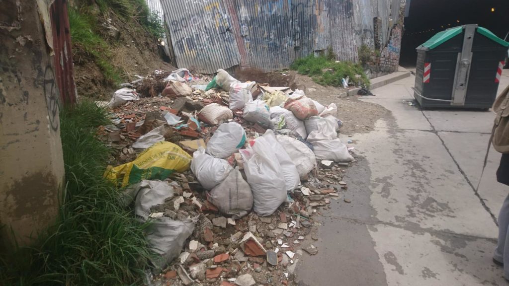 Lastimosamente, es común ver -en zonas céntricas o alejadas- que los desechos de construcción son botados en las aceras de la ciudad ocasionando un grave perjuicio al peatón o vecino, quien no puede transitar libremente por las calles paceñas. Esta situación también perjudica a los discapacitados quienes muchas veces se ven imposibilitados de seguir su ruta habitual o, en alguna circunstancia, les ocasiona accidentes.