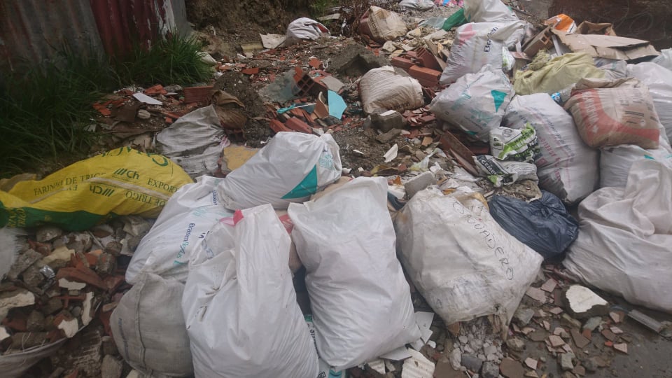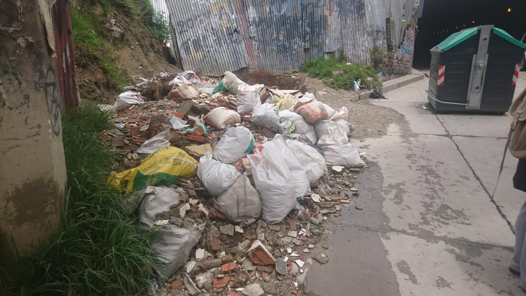 Desde hace varios días atrás, en la calle Ecuador, cerca al denominado túnel del Instituto Americano, una esquina luce la basura de alguna construcción cercana.