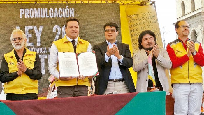 Foto: Acto de promulgación de la ley 265. Gentileza El Diario. Observatorio La Paz Cómo Vamos