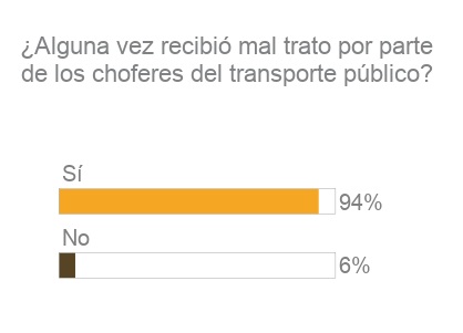 En un sondeo realizado por el OLPCV, se conoció que el 94 % de personas, en algún momento o circunstancia fue víctima de algún tipo de maltrato por parte de los choferes de las diferentes líneas de minibuses.