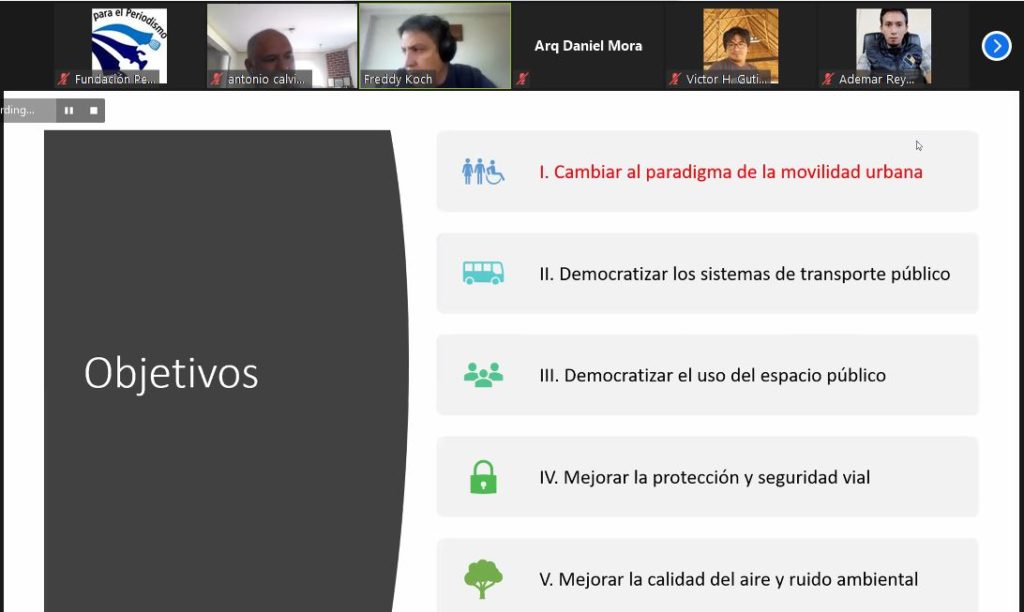“Esta pandemia del Covid-19 nos demostró que con voluntad política se pueden implementar nuevos sistemas de transporte tomando en cuenta un sistema integral de la movilidad”, afirmó Freddy Koch, especialista en movilidad urbana y docente del módulo La planificación del transporte y la calidad del aire en la gestión sostenible de las ciudades perteneciente al curso ODS 11: Perspectivas y propuestas para la gestión sostenible de las ciudades que fue organizado por el Observatorio La Paz Cómo Vamos, la Universidad Nuestra Señora de La Paz y la Fundación para el Periodismo con el apoyo de ONU Hábitat.