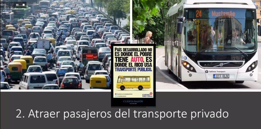 En Bolivia, gran parte de la población se moviliza en transporte público y privado; sin embargo, uno de los principales desafíos que se tiene a nivel mundial en cuanto a la movilidad es mejorar la calidad del transporte público para atraer más pasajeros. Para ejemplificar la importancia de esto mencionó que “Un país desarrollado no es donde el pobre tiene auto, es donde el rico usa transporte público” enfatizando que además el transporte público debe pensar la forma de mantener a sus pasajeros ofreciéndoles un transporte de calidad”