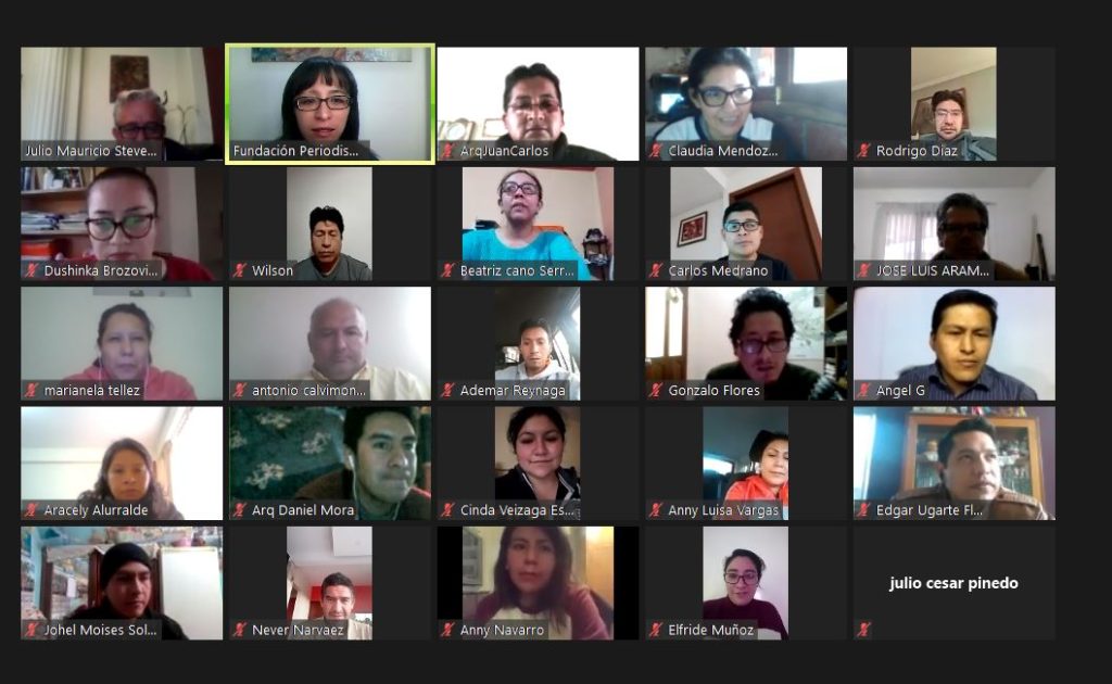 33 funcionarios municipales de La Paz, Tarija, Sucre, Cochabamba y Bermejo participaron del curso “ODS 11: Perspectivas y propuestas para la gestión sostenible de las ciudades” que fue organizado por el Observatorio La Paz Cómo Vamos, la Fundación para el Periodismo y la Universidad Nuestra Señora de La Paz (UNSLP) con el apoyo de ONU Hábitat