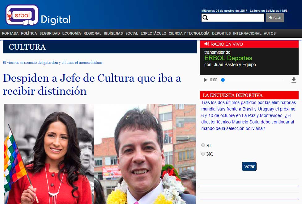 Despiden a Jefe de Cultura que iba a recibir distinción