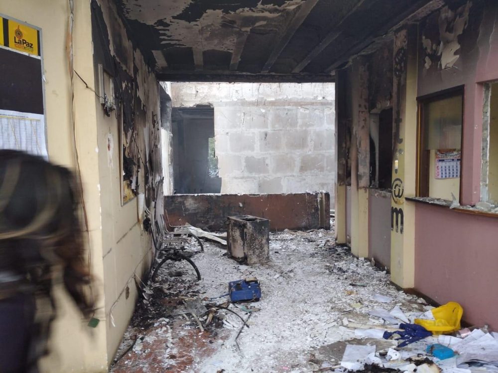 - Infraestructura de la Subalcaldía de Mallasa que fue destrozada y quemada