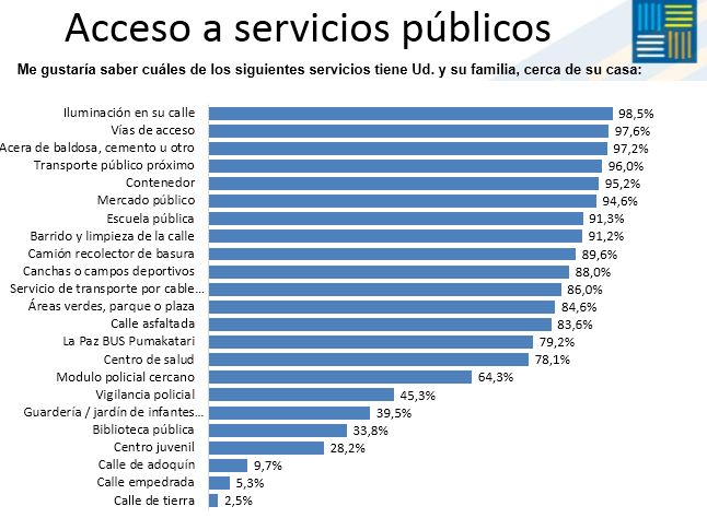 Vecinos de las diferentes zonas resaltaron la implementación de estos contenedores y el trabajo de recolección de los desechos realizado por la empresa municipal La Paz Limpia. La Encuesta de Percepción Ciudadana da cuenta que la satisfacción de la ciudadanía con los contenedores equivale al 76%, es decir, adquirieron un puntaje de 3.8 sobre 5 puntos. El barrido y limpieza de calles se hicieron merecedores de un puntaje de 3.4 puntos, que muestra una aprobación del 86% sobre el total.
