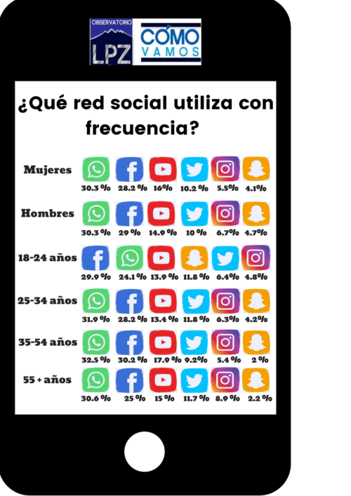 La red social que utiliza con mayor frecuencia la ciudadanía paceña es el WhatsApp. 30.3% de personas de diferentes sexos, edades y que habitan en diferentes zonas de la ciudad confirmaron este dato en la Encuesta de Percepción Ciudadana 2017 del Observatorio La Paz Cómo Vamos.