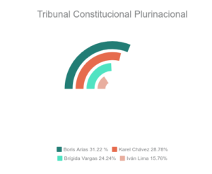 Para el Tribunal Constitucional Plurinacional (TCP), el candidato con mayor apoyo en los comicios electorales es Boris Wilson Arias López con el 31,25 %.