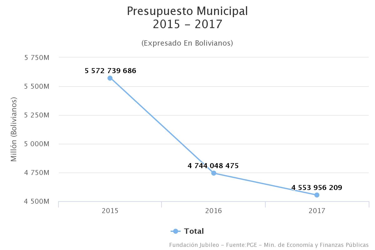 El presupuesto municipal de La Paz sufrió un descenso desde el año 2015, pues pasó de contar con Bs. 5.572.739.686 a 4.553.956.209 bolivianos