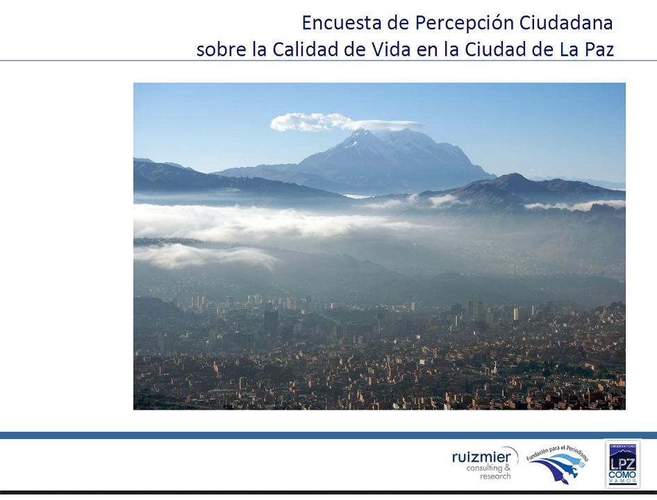 La Paz Cómo Vamos es una iniciativa ciudadana que realiza evaluaciones y seguimiento a los factores que inciden en la calidad de vida de los habitantes de la ciudad de La Paz.
