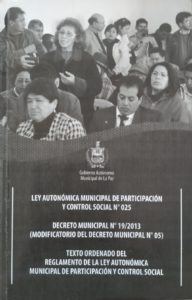 Esta investigación, que comenzó a finales del año 2017, rescata las opiniones y experiencias de los actores sociales que conforman los diferentes Consejos Ciudadanos de Planificación y el Organismo de Participación y Control Social de la ciudad de La Paz en cuanto a su participación e incidencia en la política pública.