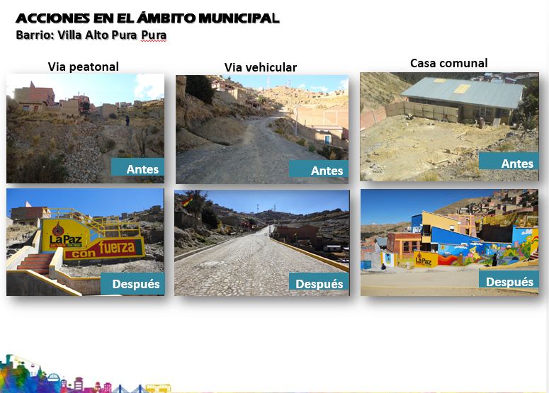 Para las autoridades paceñas, la meta 11.3 “aumentar la urbanización inclusiva y sostenible y la capacidad para la planificación y la gestión participativas” se ve reflejada en el Programa de Centralidades Urbanas, Proyectos urbanos y Viaductos.