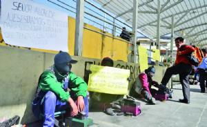 27/10/2017.- Bernardo Mamani, dirigente de los lustrabotas denunció que fueron echados del espacio donde trabajan por un grupo de vendedoras, en el atrio de San Francisco.
