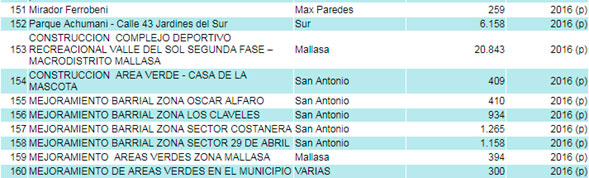 El año 2016 se realizaron 14 intervenciones para la estabilización de deslizamientos en los macrodistritos. En el macrodistrito Sur se realizaron 5 estabilizaciones, en Cotahuma, 4 en Mallasa 3 y en San Antonio, 2.