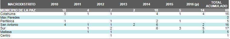 Fuente: Elaboración propia con datos del Anuario Estadístico del Municipio de La Paz 2016. GAMLP