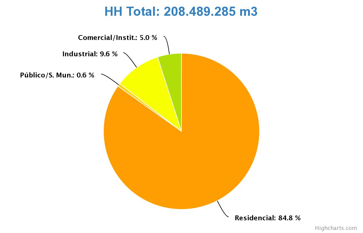 La huella hídrica directa total de la ciudad fue de 208.489.285 m3 o su equivalente DE 208 Hm3. La composición presenta demuestra que existen varios contaminantes en el agua que atraviesa la ciudad.