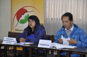 Representantes de CIDES-UMSA, Instituto de Transporte-UMSA, PIEB y Banco Mundial Gabriela Villarroel (Concejo Municipal de La Paz) y Milton Castro (Pastoral Caritas) Patricia Urquieta (CIDES-UMSA) y Waldo Yanaguaya (Instituto de Transporte – UMSA) Navegación de entradas Mesa redonda: Seguridad Ciudadana Mesa Redonda: Violencia Infantil en el municipio de La Paz