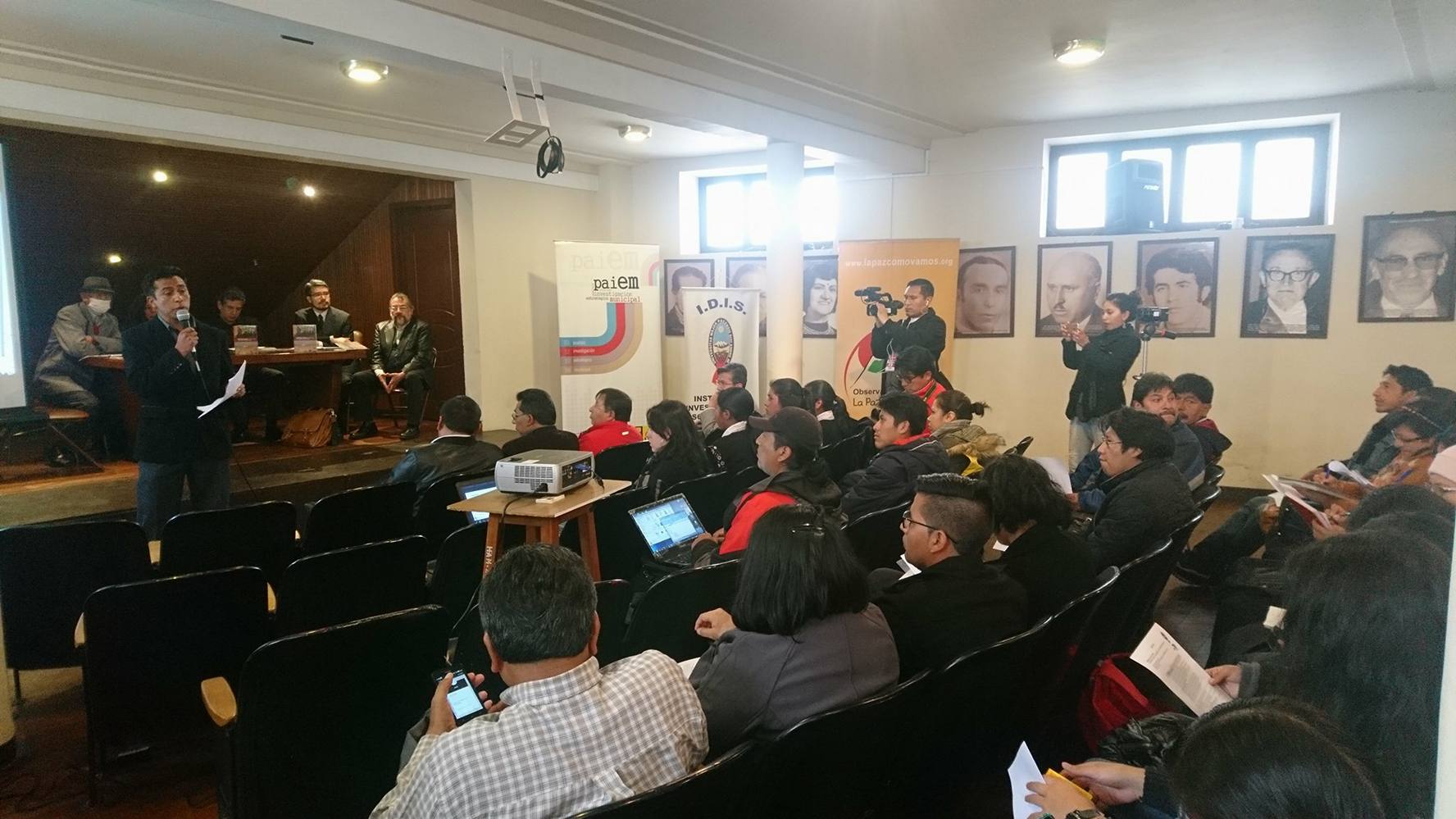 En la presentación del libro, que fue elaborado por el Instituto de Investigaciones Sociológicas bajo la dirección del Msc. René Pereira Morató, estuvieron presentes en testera el ex director del Instituto de Investigaciones Sociológicas, René Pereira, el coordinador de la investigación, Ronald Tarqui, representantes de la Fundación Construir y UNFPA, Edgar Pacheco del Gobierno Autónomo Municipal de La Paz y Jorge Sainz del Observatorio La Paz Cómo Vamos.