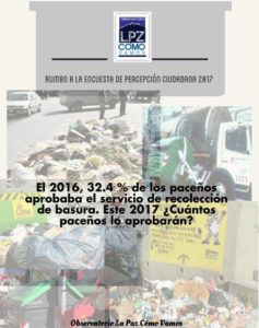 Encuesta basura Navegación de entradas Rumbo a la Encuesta 2017: Seguridad Ciudadana Rumbo a la Encuesta 2017: ¿Satisfacción con el servicio móvil?