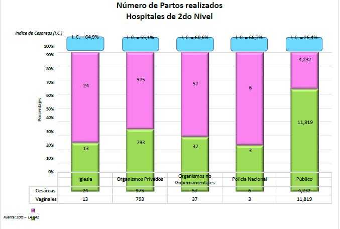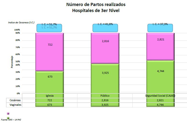 En el municipio de La Paz, según los datos del SEDES, se atendieron 11.314 partos con una proporción similar entre partos vaginales y cesáreas.