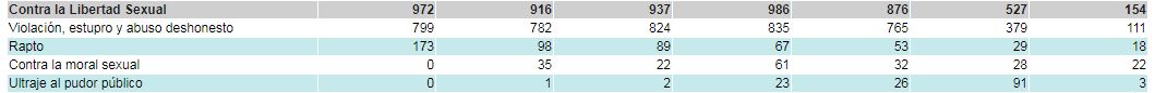 Uno de los tipos de delitos contra las personas es el relacionado a la libertad sexual que incluye la violación, estupro o abuso deshonesto, rapto, contra la moral sexual y el ultraje al pudor público. En total, en La Paz se registraron 154 denuncias: 111 corresponden a violación o estupro.