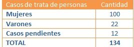 Informes de la Fuerza Especial de Lucha Contra el Crimen FELCC correspondientes al año 2016 dieron cuenta de 134 casos de trata de personas. Del total de víctimas, 100 son mujeres